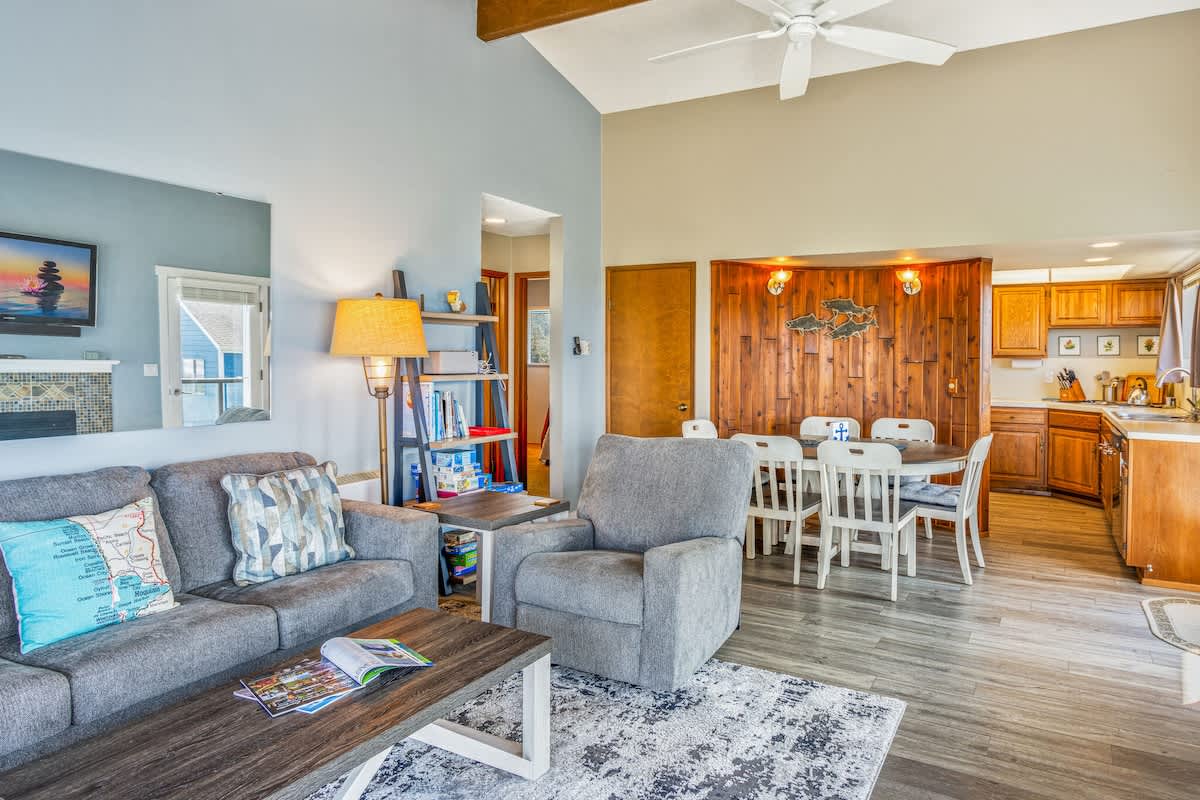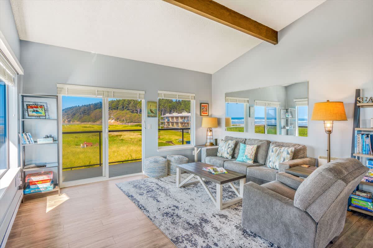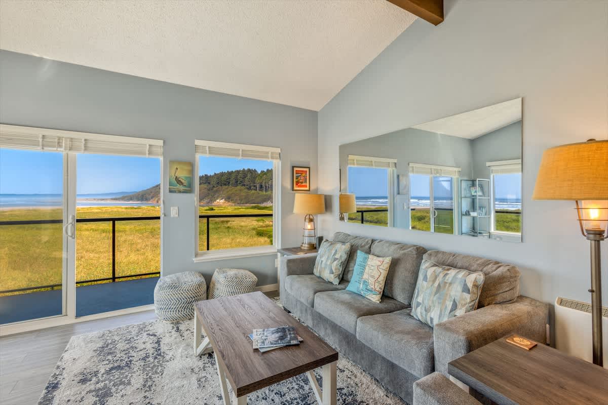 Newly remodeled and boasting the best view at Hi-Tide Resort, Pelican's Perch features wraparound windows that offer panoramic views of Point Grenville to the north and the endless Pacific Ocean to the west.