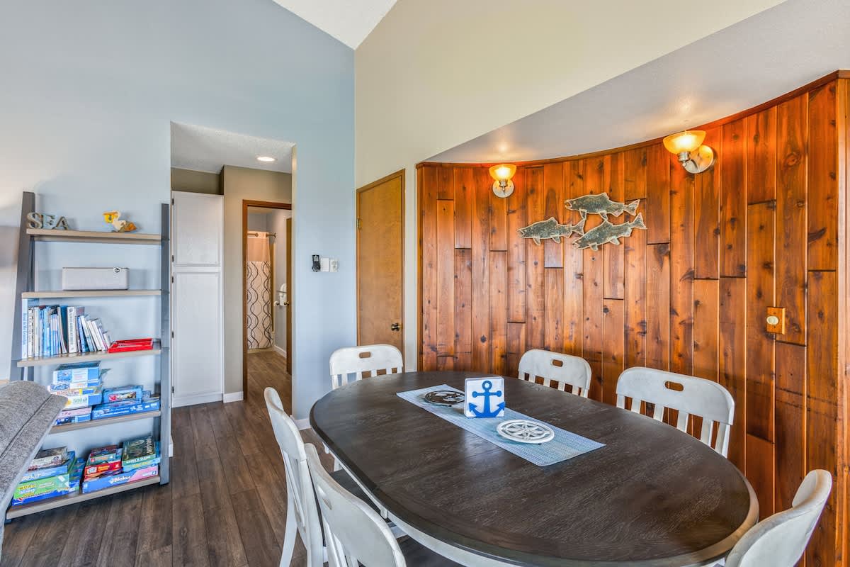 Relax to the sounds of speeding gulls soaring over the waves, watch pelicans dive for fish, or spot eagles perched in nearby trees from this magical, top floor, corner unit. With direct access to the beach, you’re just steps away from the majestic blue Pacific. No matter what you choose to do – flying kites, digging for clams, searching for shells, or taking long walks on the beach – your stay at Pelican’s Perch will be unforgettable.