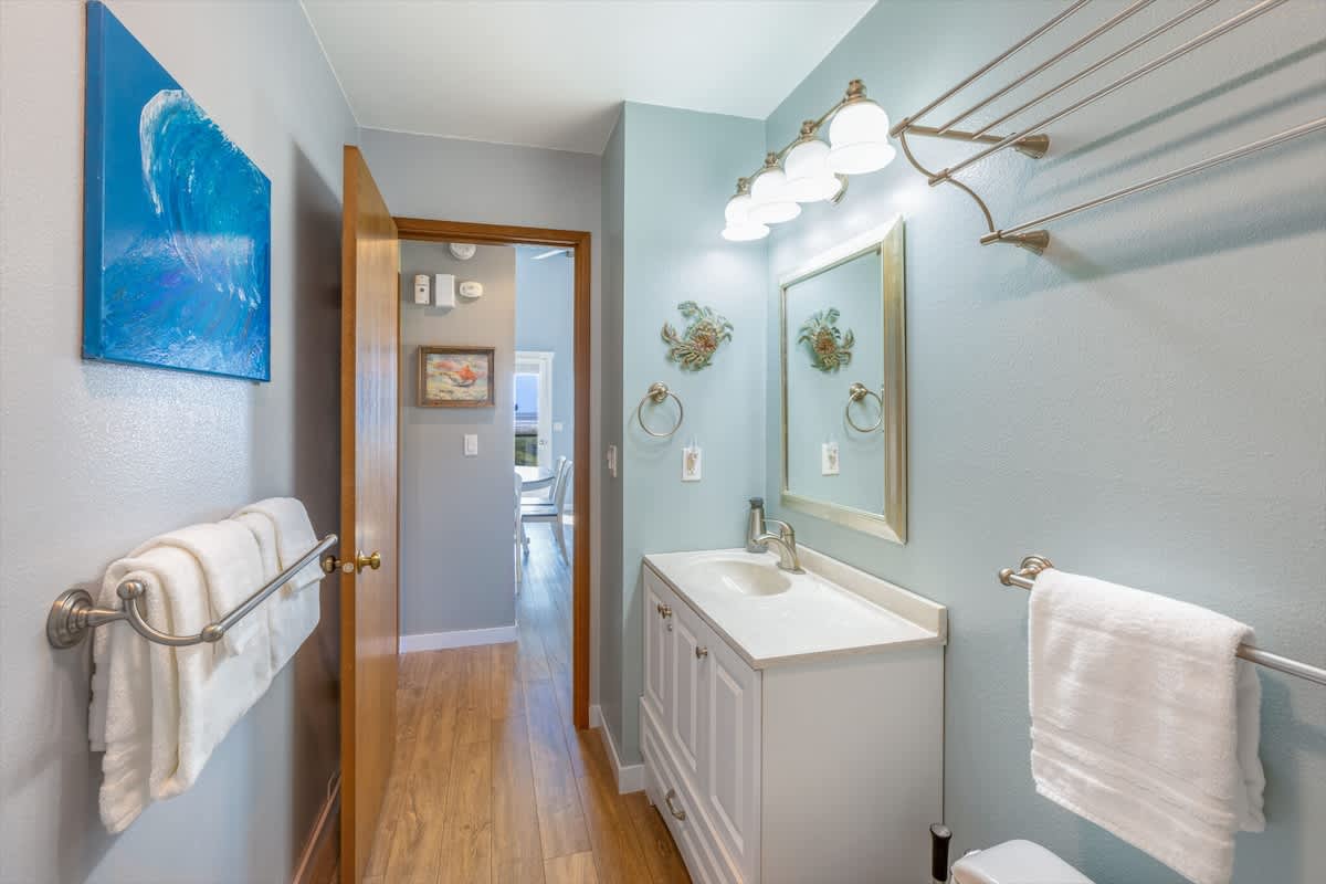 The large wraparound deck provides plenty of space for outdoor dining for the entire family, or a quiet spot to savor your morning coffee or evening cocktails while soaking in the scenery. Inside, full venetian blinds give you the option to block the afternoon sun while still enjoying the breathtaking ocean views.