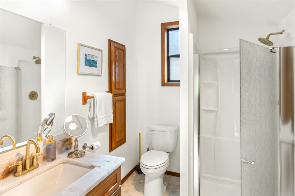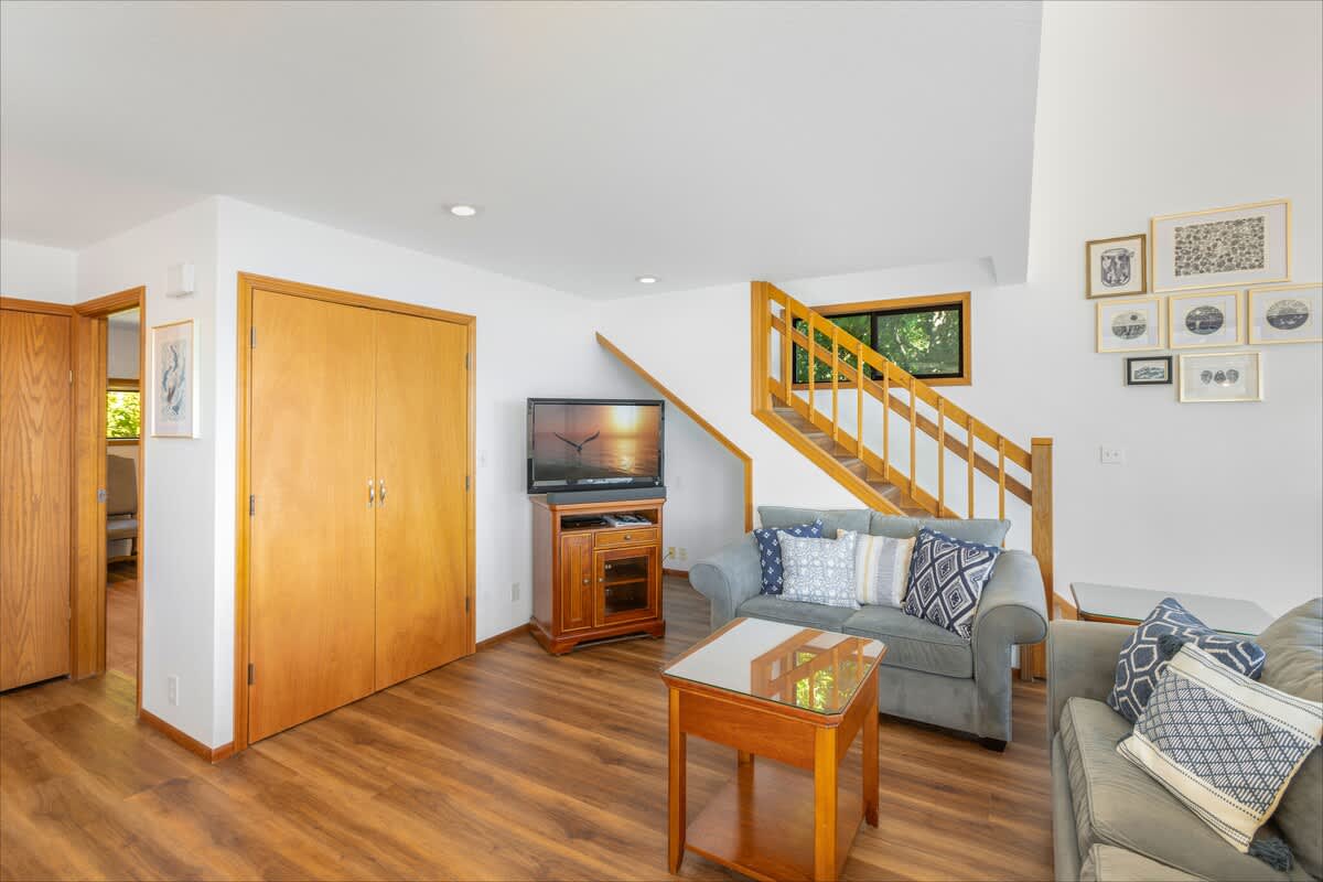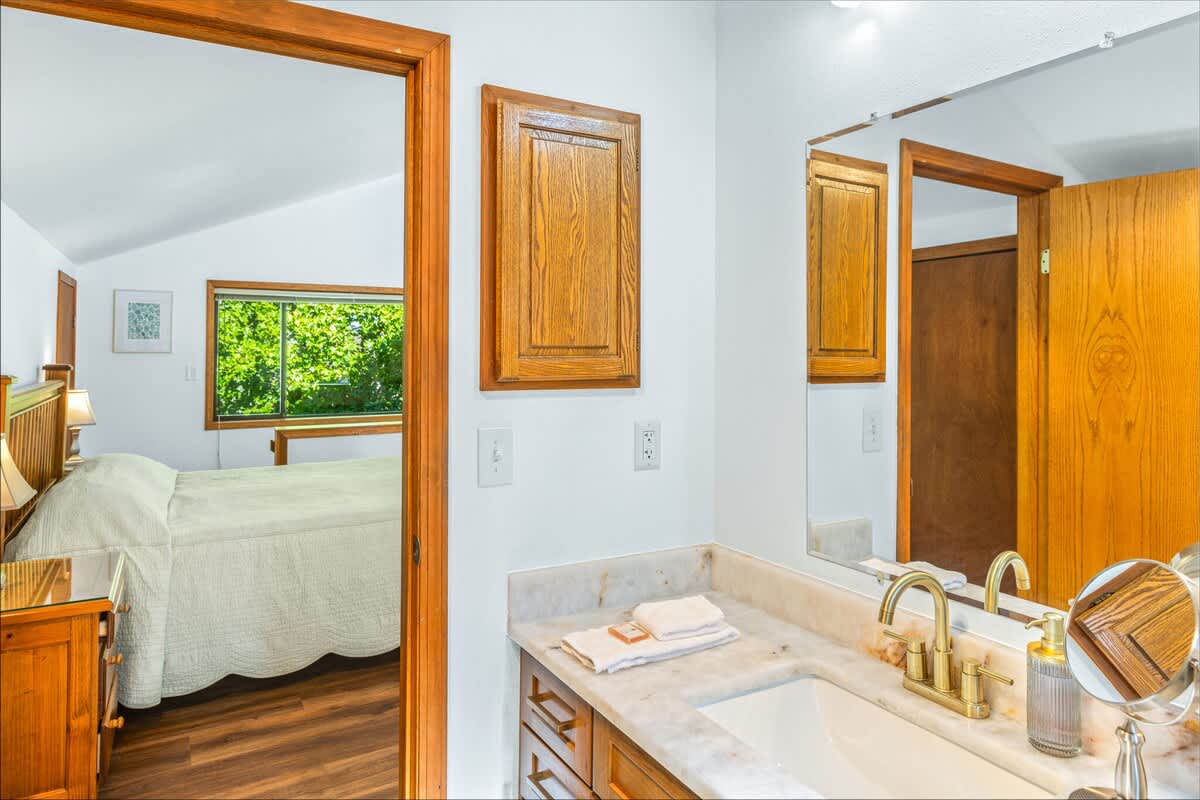In the main-floor bedroom you will find a comfy king-sized bed. If working remotely is included in your plans, there is a convenient computer desk where you can set up your work station. On the lower floor are two more bedrooms - one has a king bed and the other has two twins. All beds feature memory foam mattresses for a great night's sleep.