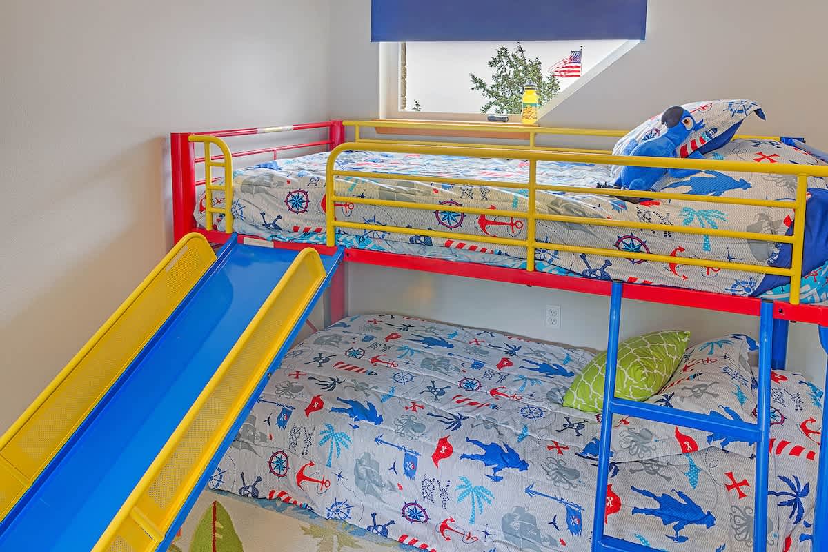 Both of the master suite bedrooms have gorgeous views of the ocean and even the bunk bed upstairs has a view of the water. Most places have the "best" room, but here at Sandcastle Bluff every room is the best room!