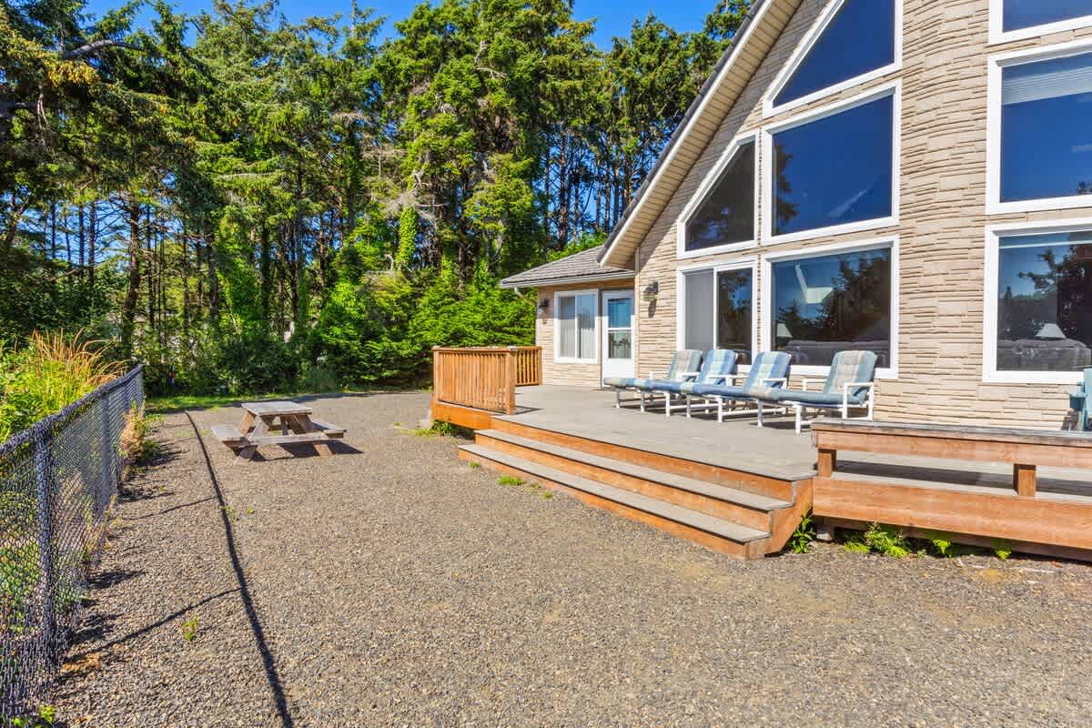 This is one of our finest rentals on the coast. It sits on top of a bluff that has an unobstructed view of the ocean.