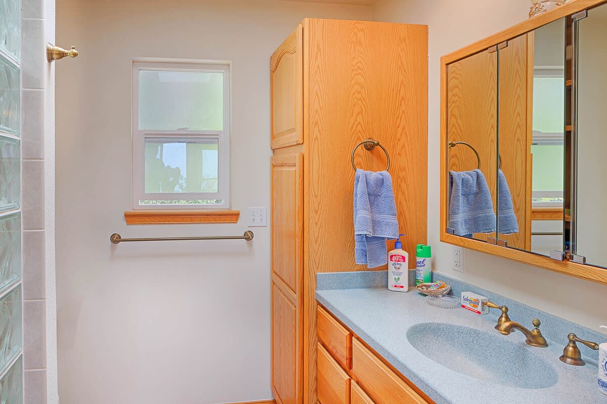 The kitchen comes fully equipped with everything you need to cook up a storm. All of the pots, pans, dishes, and flatware are provided for you in order to create the perfect meal for everyone. Enjoy your meal at the table that overlooks the water as well!