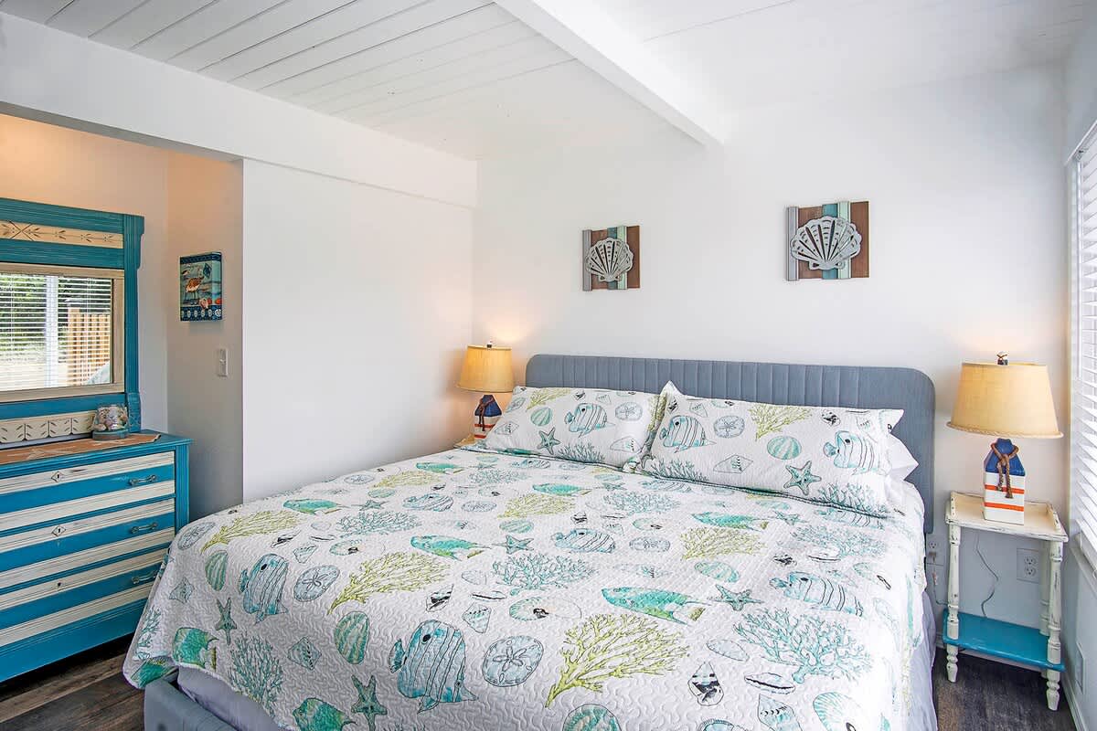 There's a quaint kitchen perfect for any culinary creation and a comfy-cozy living room with a sleeper sofa too: a relaxation paradise.