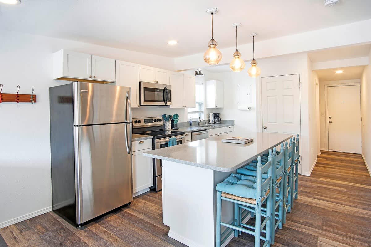 We stock the unit with fresh linens and bedding as well as the kitchen with all of the utensils/pots & pans you'll need to pack a picnic or whip up a midnight snack.