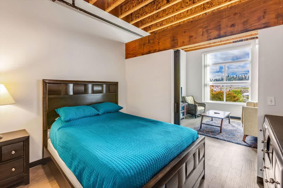 Beautiful high ceilings give the unit a spacious feel. Expansive windows overlooking Downtown Bremerton, Puget Sound Navy Museum and Pacific Avenue give you endless opportunities for people watching while you relax and let the bustle fade away while natural light streams in.