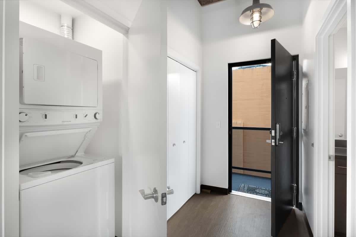 The walk-in closet has plenty of room for your wardrobe and includes a stacked washer/dryer for that last minute load of laundry. If you need extra storage space there is also a large closet near the front door for your extra shoes/jackets, etc. In the bathroom, you'll find a shower/tub combo, clean towels and a well-lit vanity.