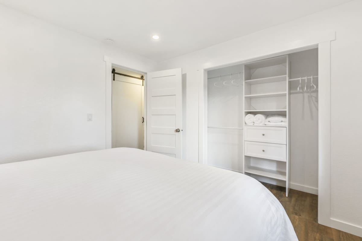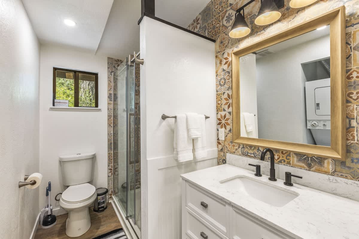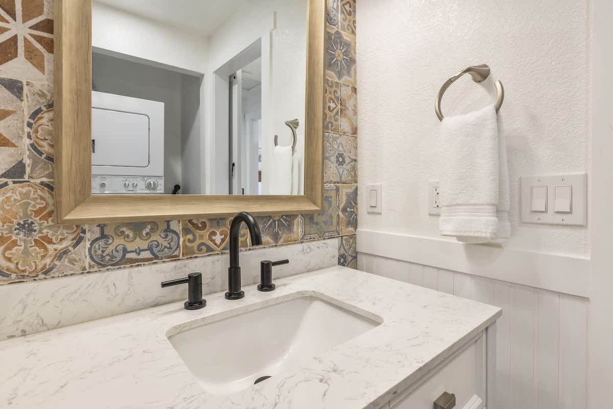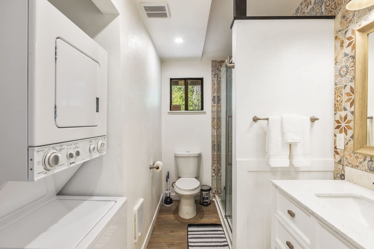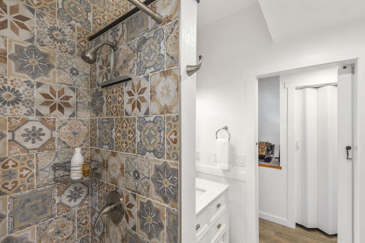 Down the hall is the sliding door to the bathroom, complete with stall shower. Past this are two charming bedrooms to put down your head and let your troubles fade away. One bedroom features a queen-sized bed, the second a queen-sized trundle bed.