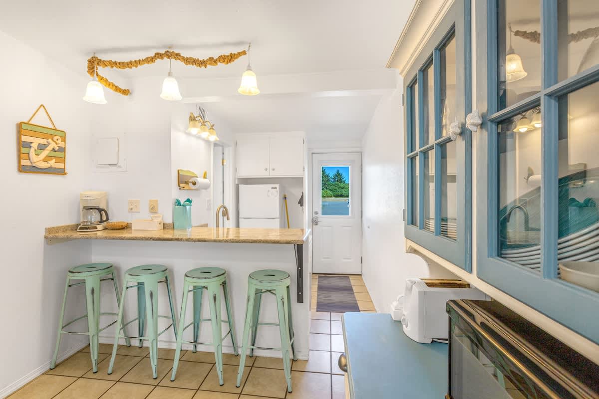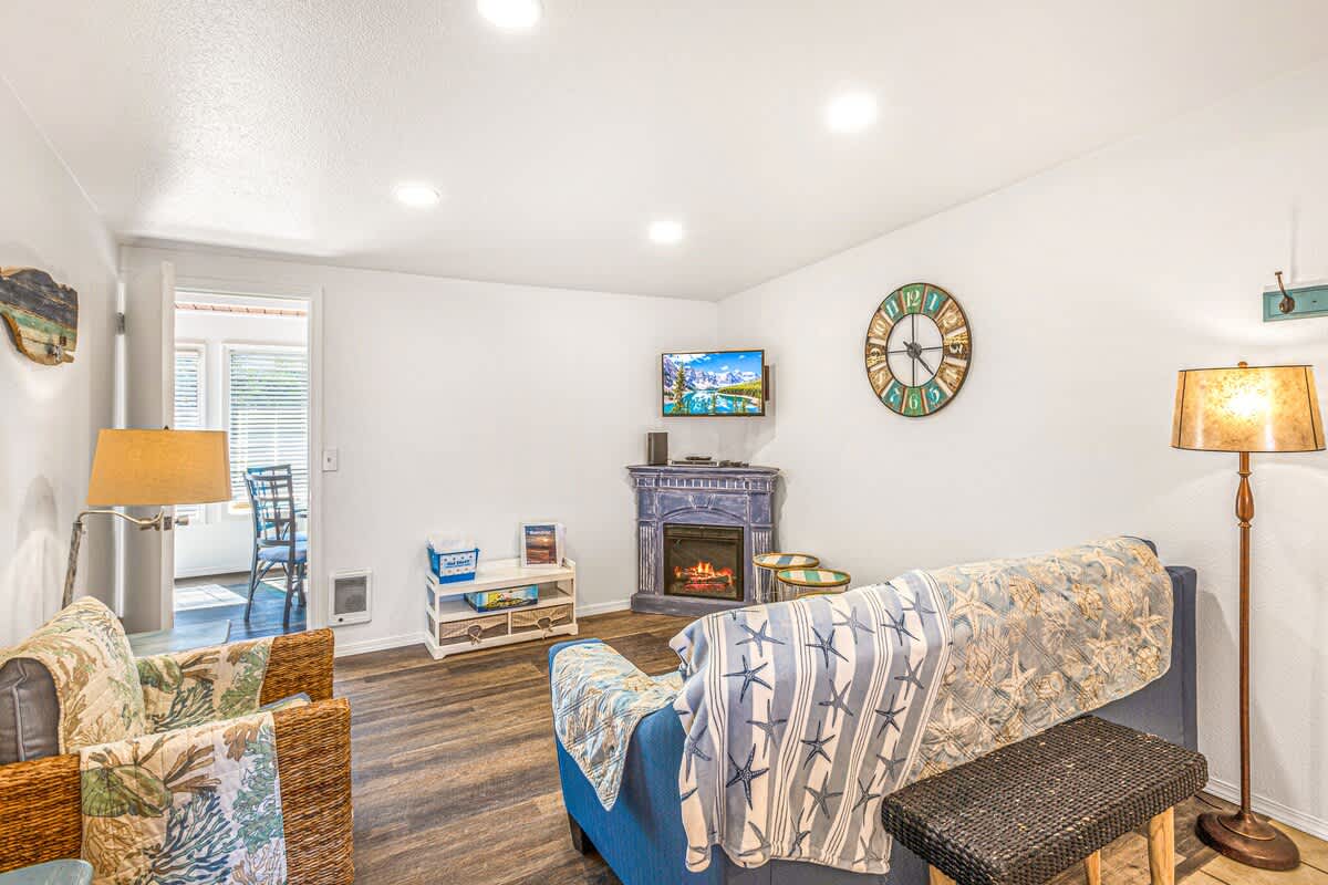 Although this condo doesn’t have the biggest kitchen, it’s the perfect size to pack a picnic for your seaside adventures or whip up a breakfast before your day beneath the sun. Or if you're a stormwatcther in the Winter & Fall months, you will love the fireplace to cozy up next to.