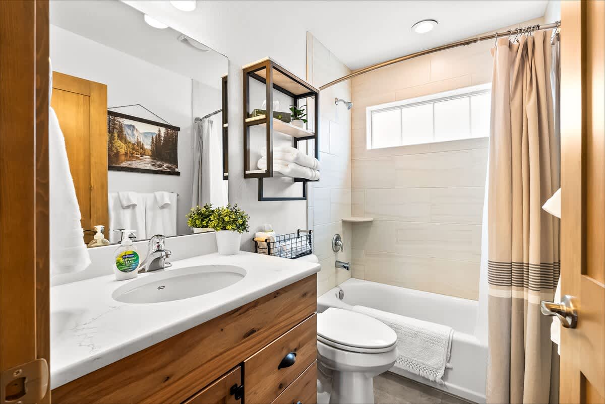 This charming home offers a cozy and comfortable living space and three comfy bedrooms. One with a king bed, another a queen, and the third bedroom features two twins and a full, providing plenty of room for the whole family or a group of friends. You'll find two bathrooms, both featuring shower/tub combos. Plush linens and towels are provided for your stay.
