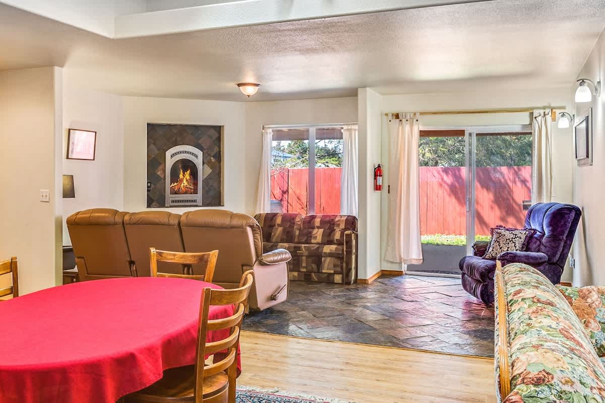 Your family will likely spend most of their time in the fenced backyard with its huge patio and bubbling clean hot tub. For evening fun there's a safe fire pit where you can roast hot dogs and marshmallows or just tell stories.