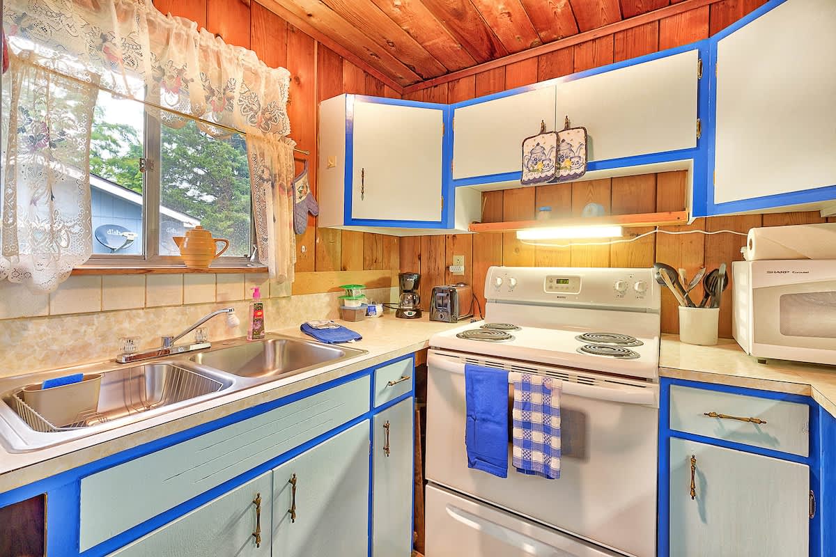 Although the Crew's Quarters cabin is on the smaller side, the kitchen does come fully equipped with new appliances and everything you need in order to enjoy a quiet meal amongst your loved ones. With tons of counter space, you can cook up those freshly caught clams!