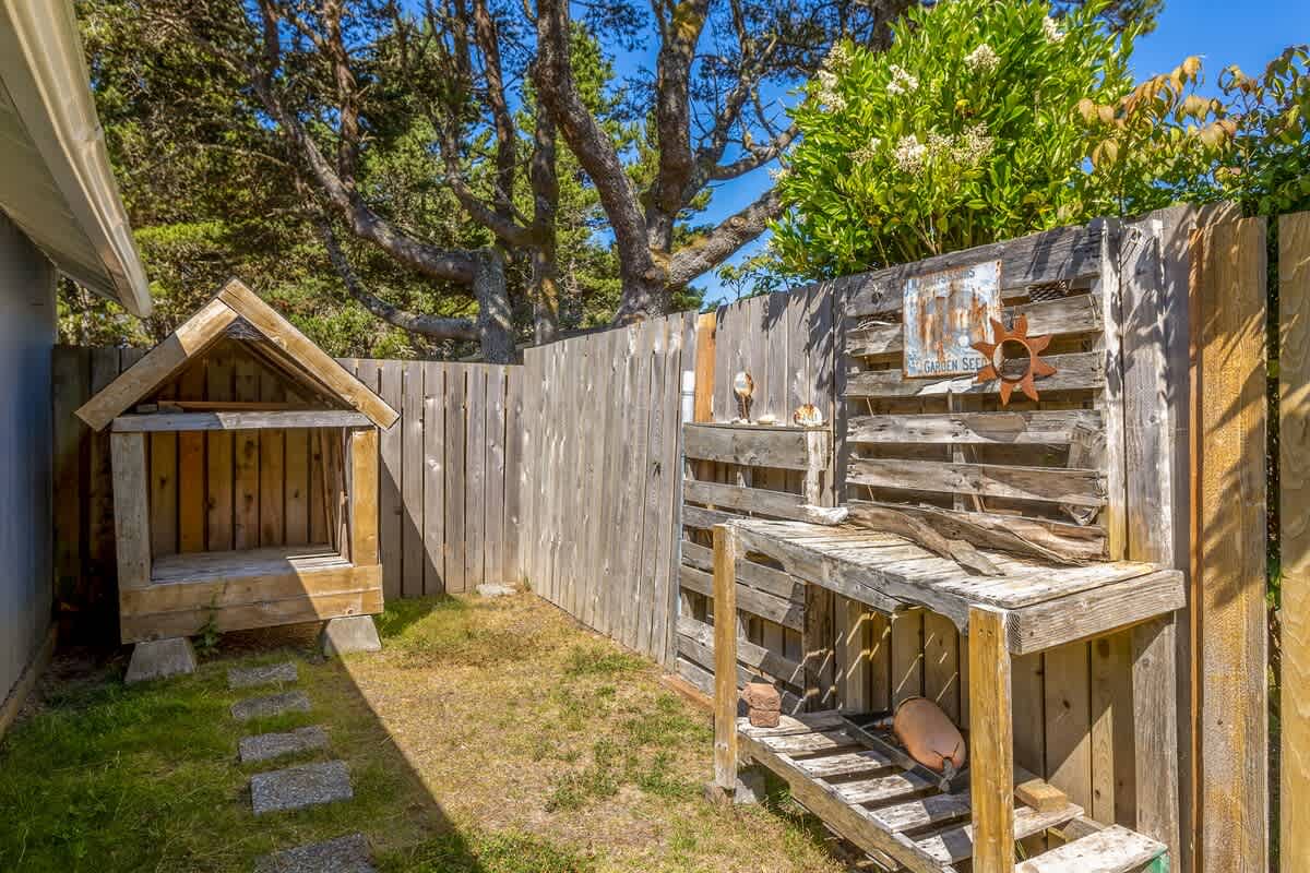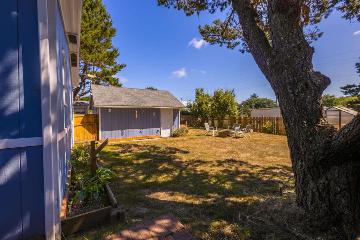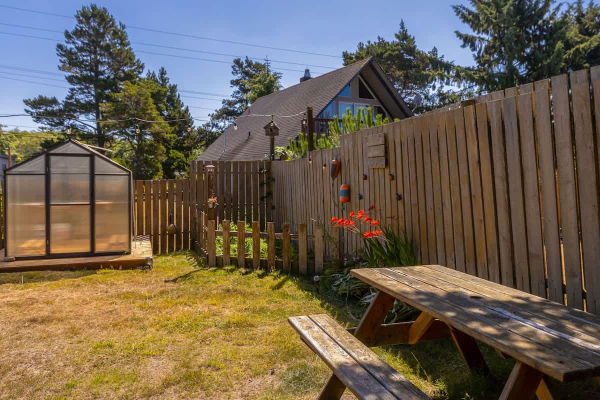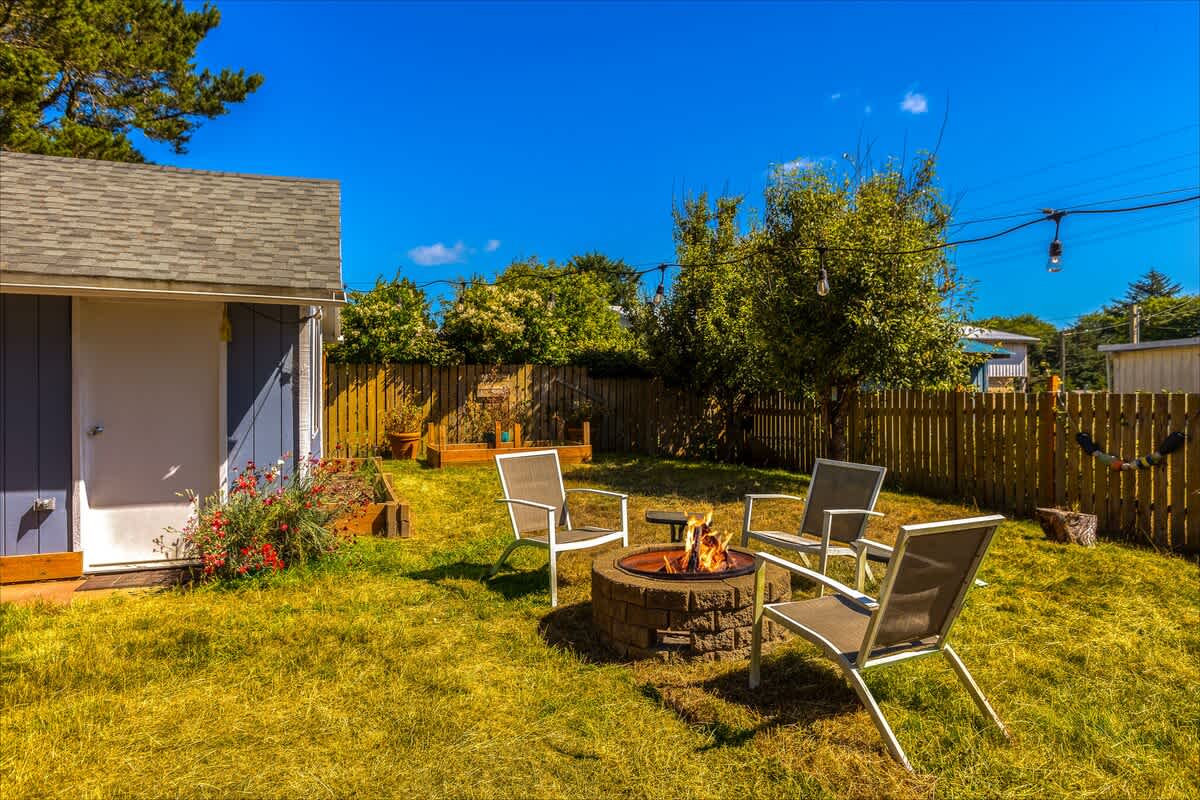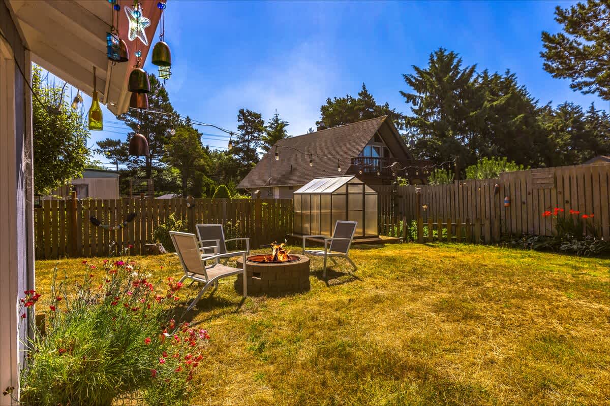 Step outside to enjoy your own private backyard oasis. The fully fenced yard includes a greenhouse and garden area, ideal for morning coffee or evening wine under the coastal sky. For chilly autumn and spring evenings, the fire pit provides a magical place to enjoy the evening.