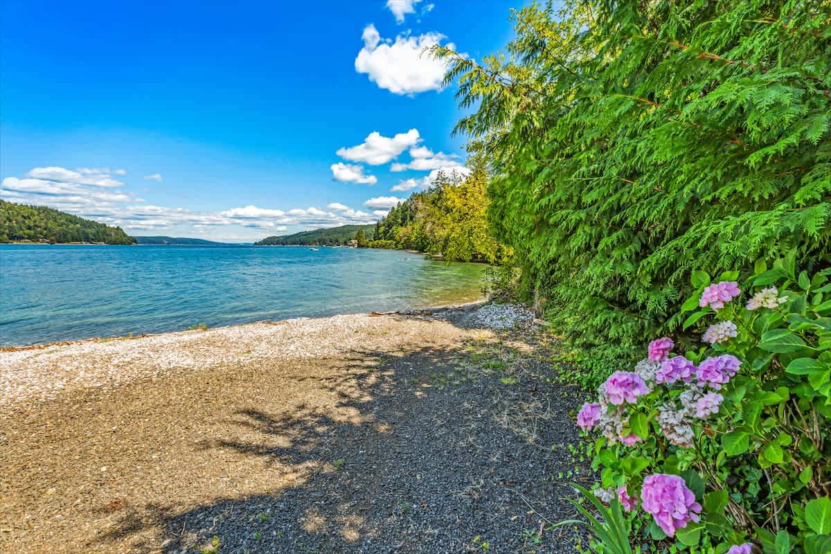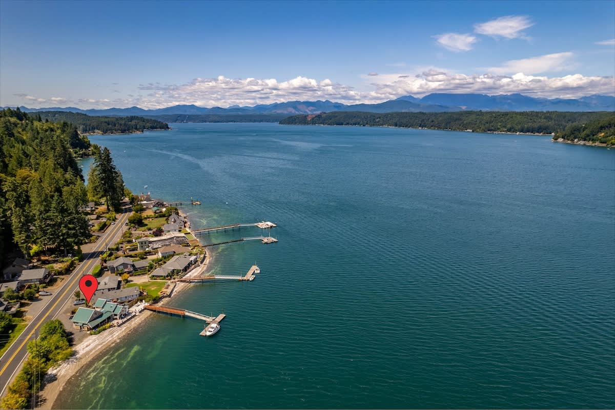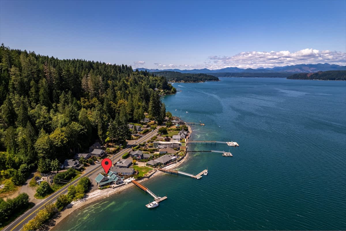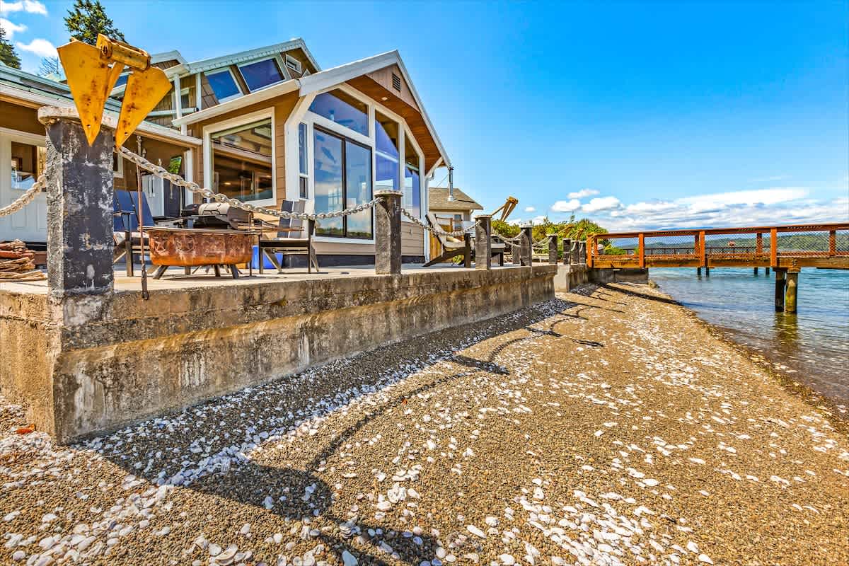 Wake up to panoramic views of Hood Canal and the Olympic Mountains at Utopia Cove, a true waterfront retreat in Union, WA with nearly 200 feet of beachfront.