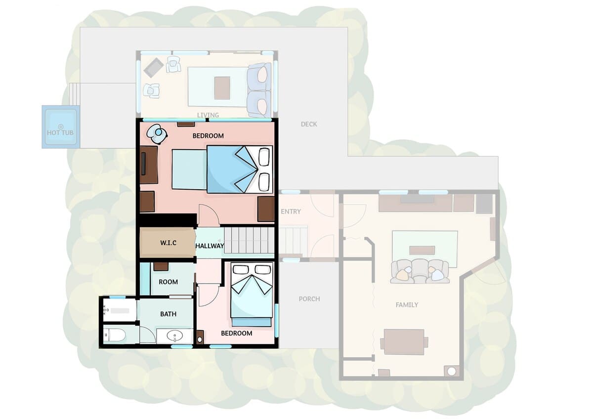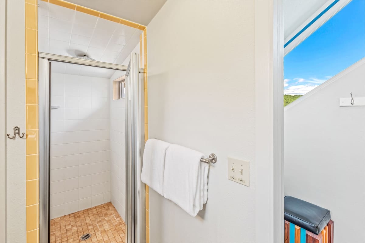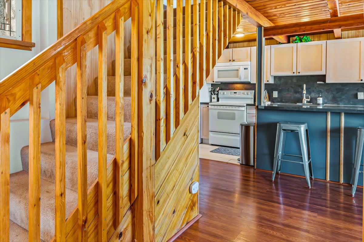 A rec room offers room to play games or relax, while the hot tub provides the perfect spot to unwind under the stars after a day of exploring, hiking, or boating.