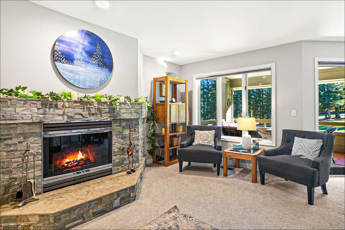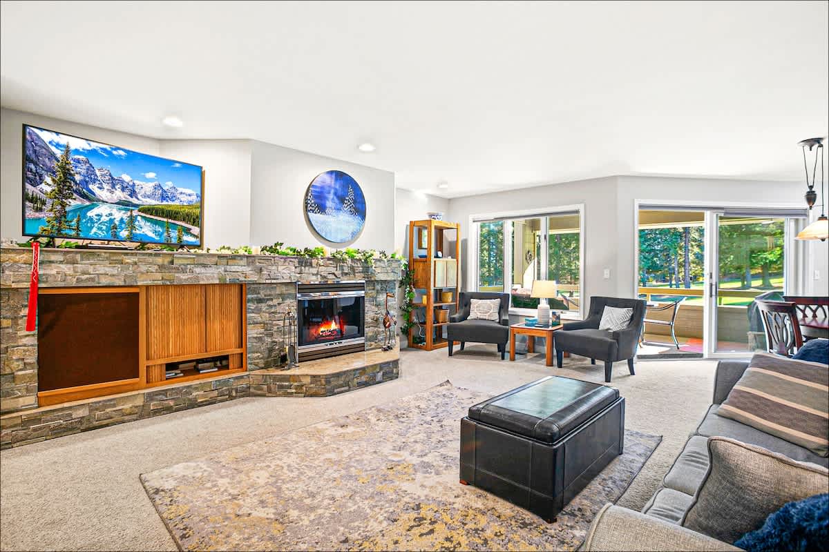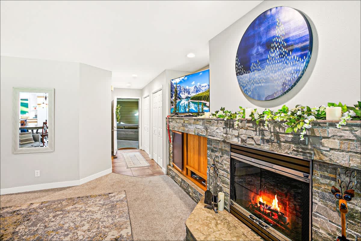 To help you wind down at the end of the day, you'll have the living room's warm, cozy fireplace. Or you can kick back and watch your favorite show or movie on the flat-screen television.