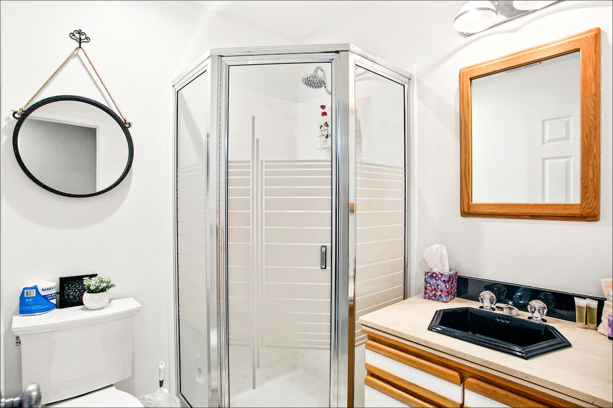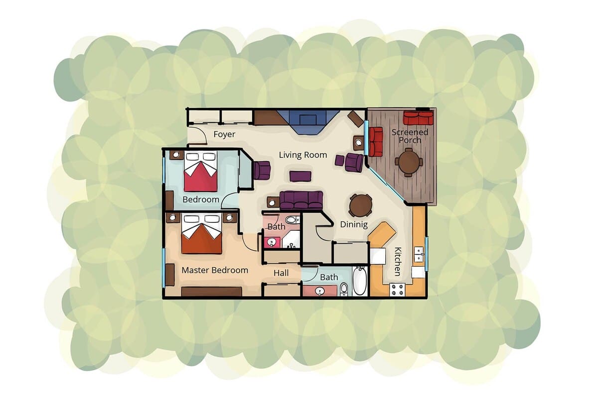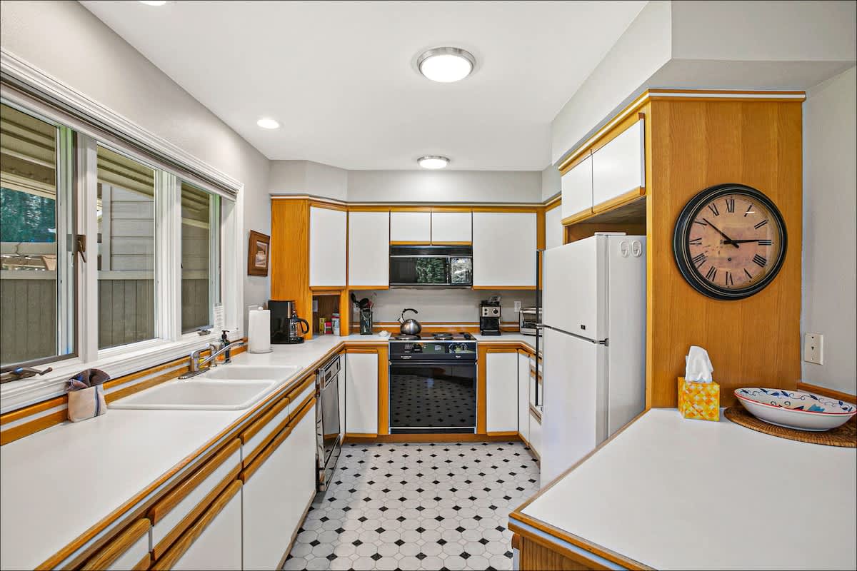 The full-sized kitchen, stocked with dinnerware, as well as pots and pans, is perfect for whipping up a great meal after a long day of exploring. With every appliance you need, this kitchen is sure to please all the cooks in your group.