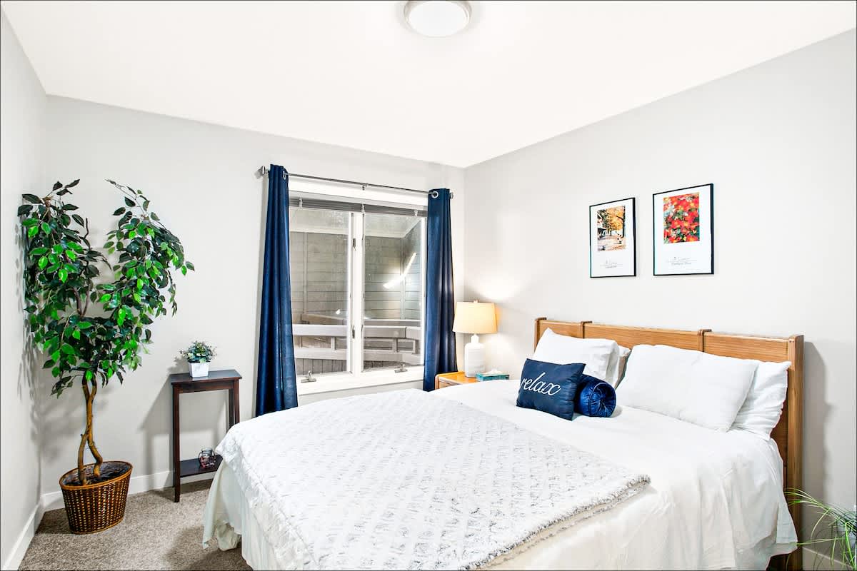 The first bedroom features a comfy king-sized bed and ensuite bath. The second bedroom has an equally comfy queen. Plush towels and linens are provided.