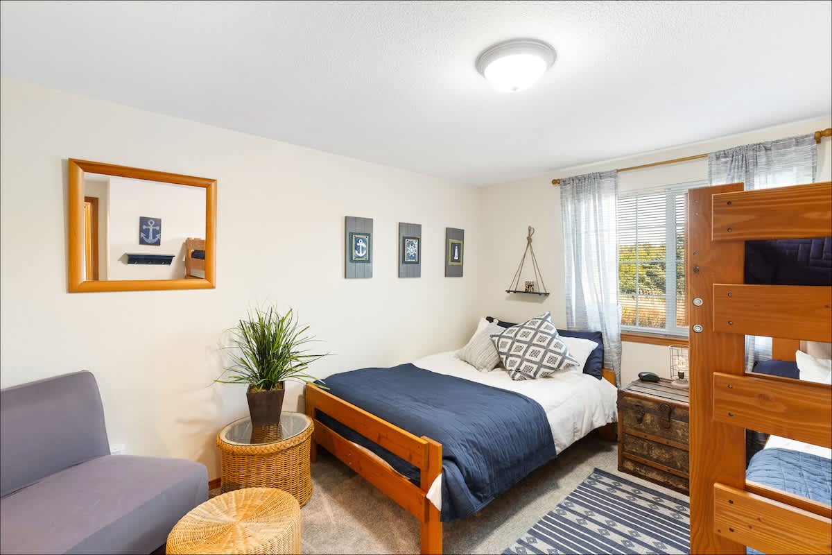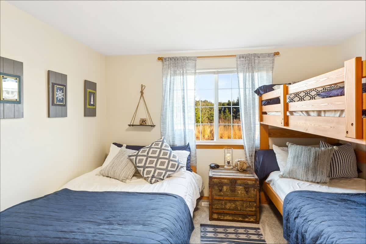Three bedrooms offer a king-sized bed, two queens and a set of twin bunk beds. In the den, you'll also find a full-sized sofa sleeper. For the little ones, the owners have thoughtfully provided a pack-n-play and a stroller for your use.
