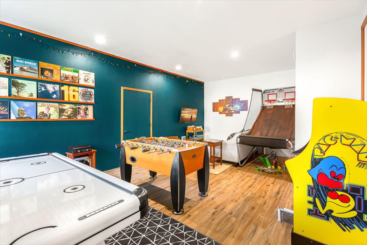 But let's not forget the recently remodeled game room, with games to entertain the whole crowd, including foos ball, basketball, retro arcade game, air hockey and gaming system. It's perfect for enjoying your day when the weather isn't perfect.