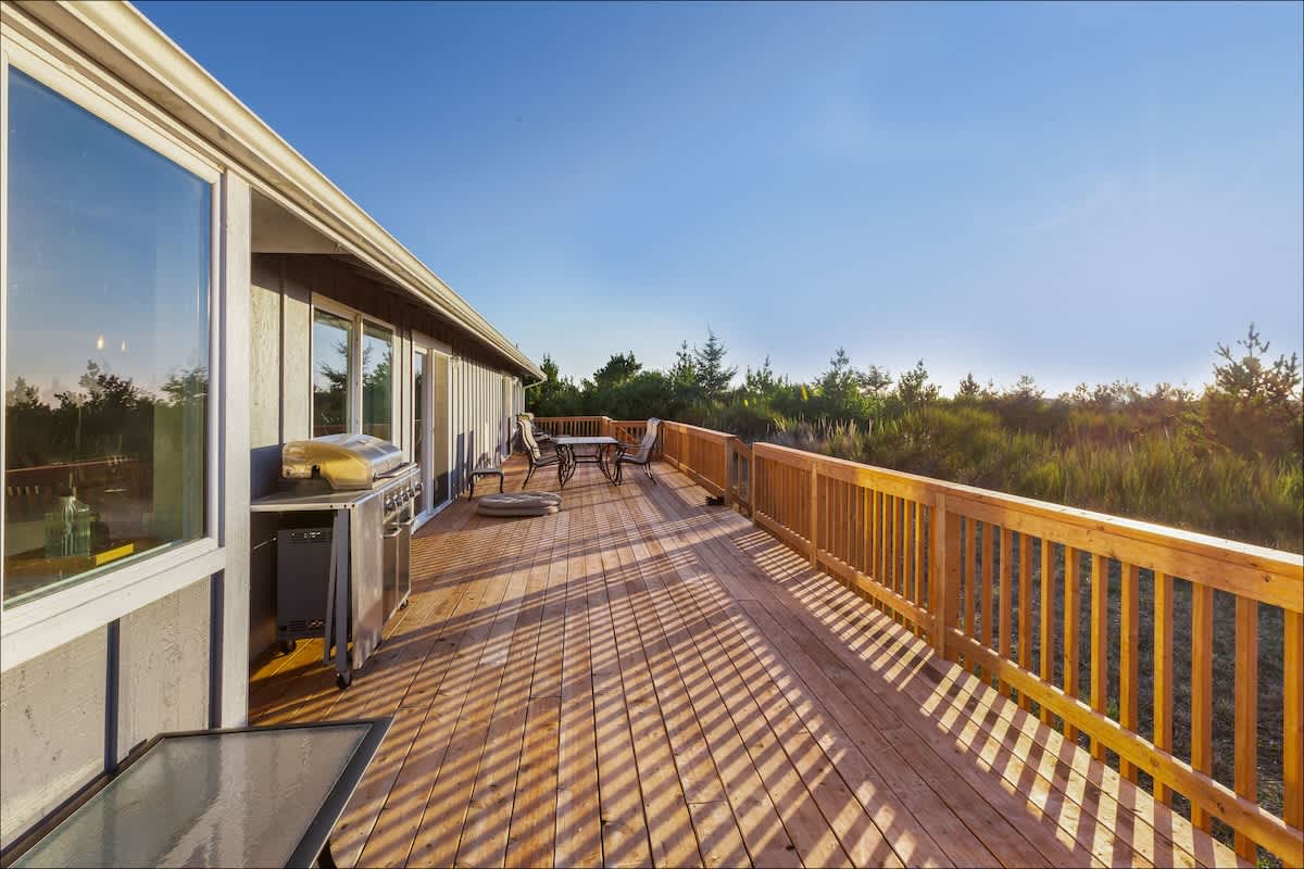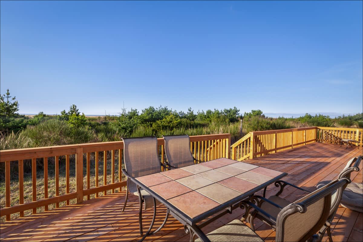 Outside, the deck features a dining table, additional seating and a gas barbecue the grill master in your group will love. If you are a clamming enthusiast, there's an outdoor clam sink. There's also additional outdoor seating on the front porch, with a gas fire pit where you can sip an evening glass of wine while you watch the stars come out.