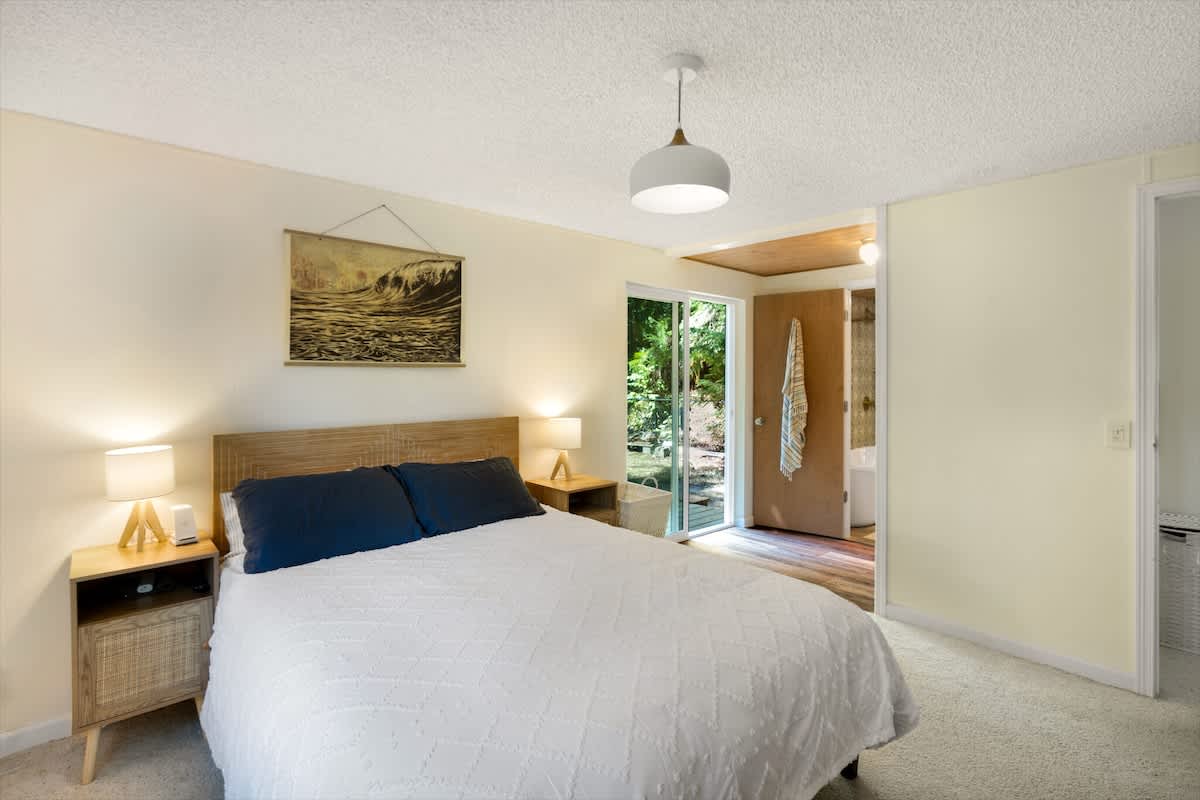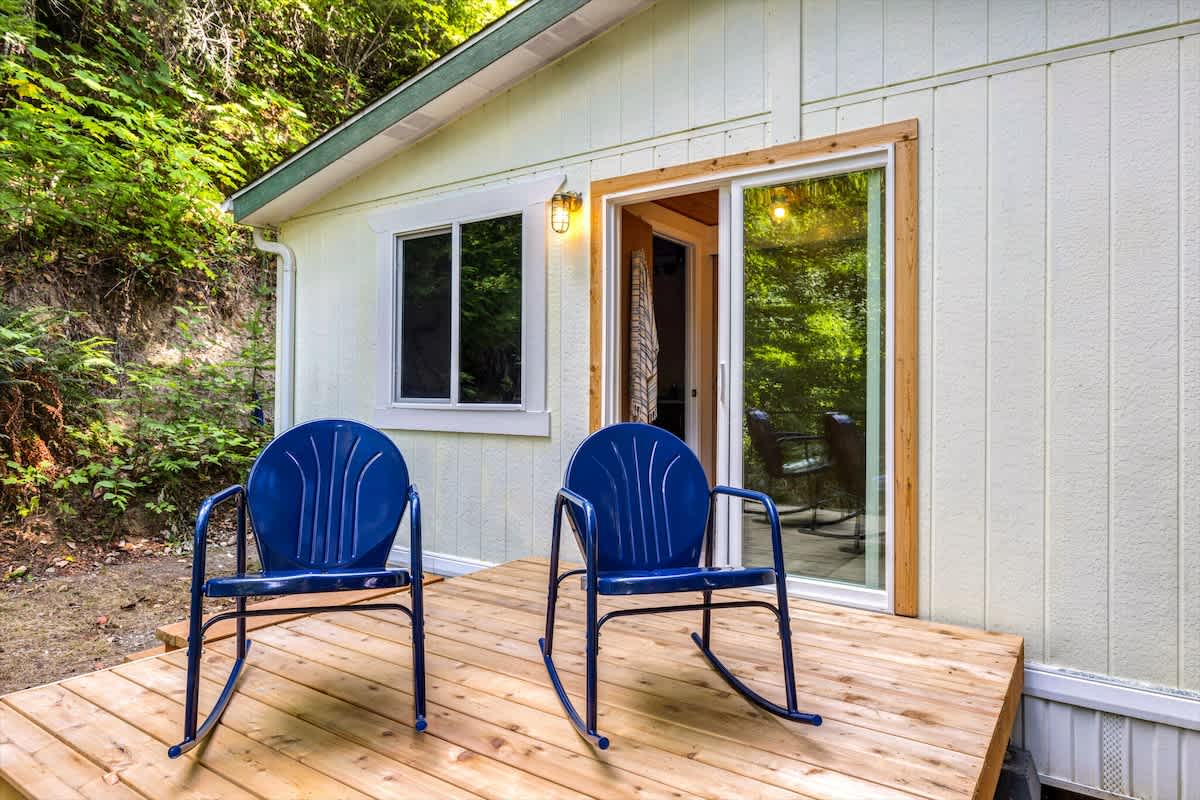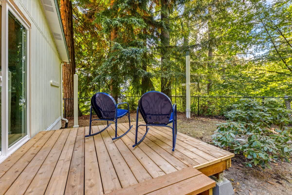 Out on the deck, take advantage of the barbeque for a little al fresco dining. Because the deck is covered, it can be enjoyed rain or shine. In the backyard see if you can spot the giant coastal redwoods along bluff! You'll also be drawn to the well-manicured hills behind the house, with walking trails and vista points. It's sure to make you feel like you have your own private garden during your stay.