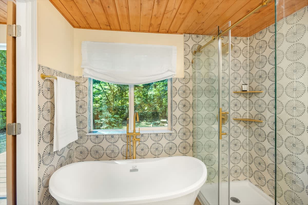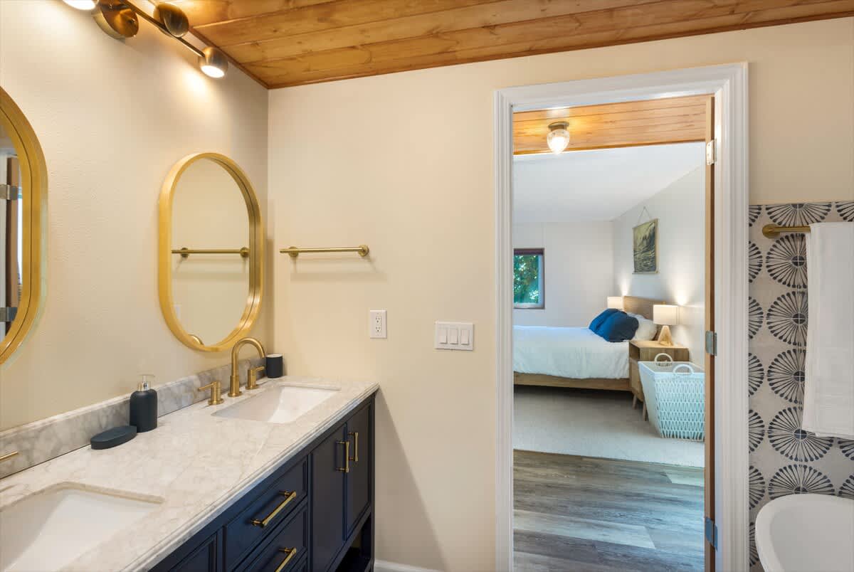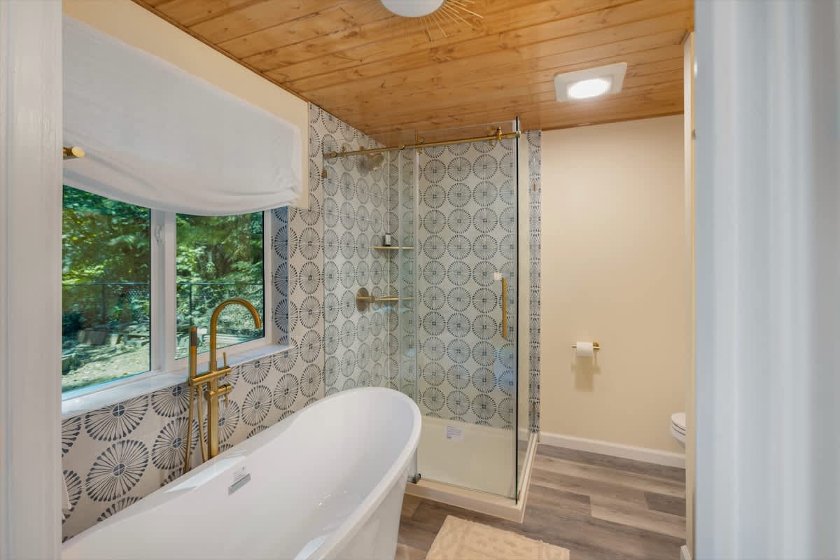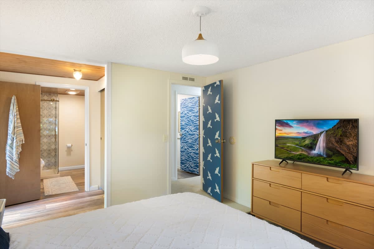 Out on the deck, take advantage of the barbeque for a little al fresco dining. Because the deck is covered, it can be enjoyed rain or shine. In the backyard see if you can spot the giant coastal redwoods along bluff! You'll also be drawn to the well-manicured hills behind the house, with walking trails and vista points. It's sure to make you feel like you have your own private garden during your stay.