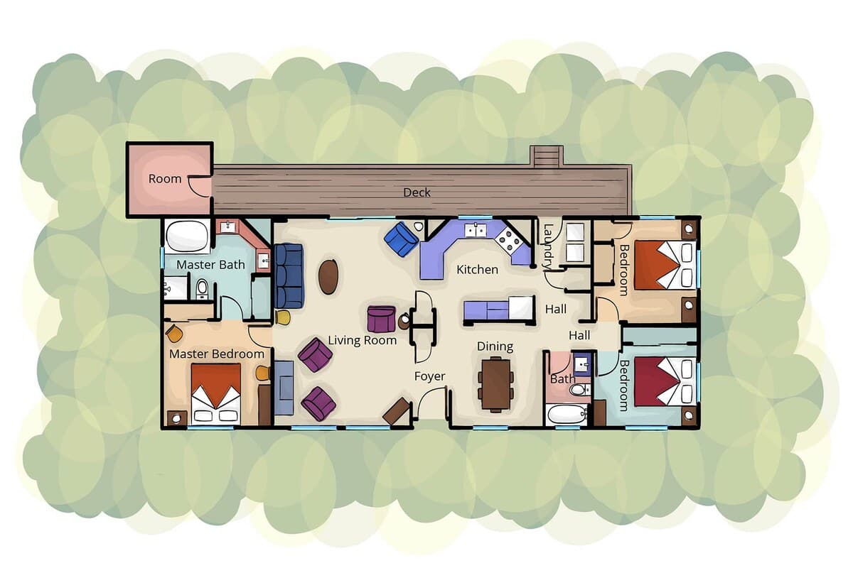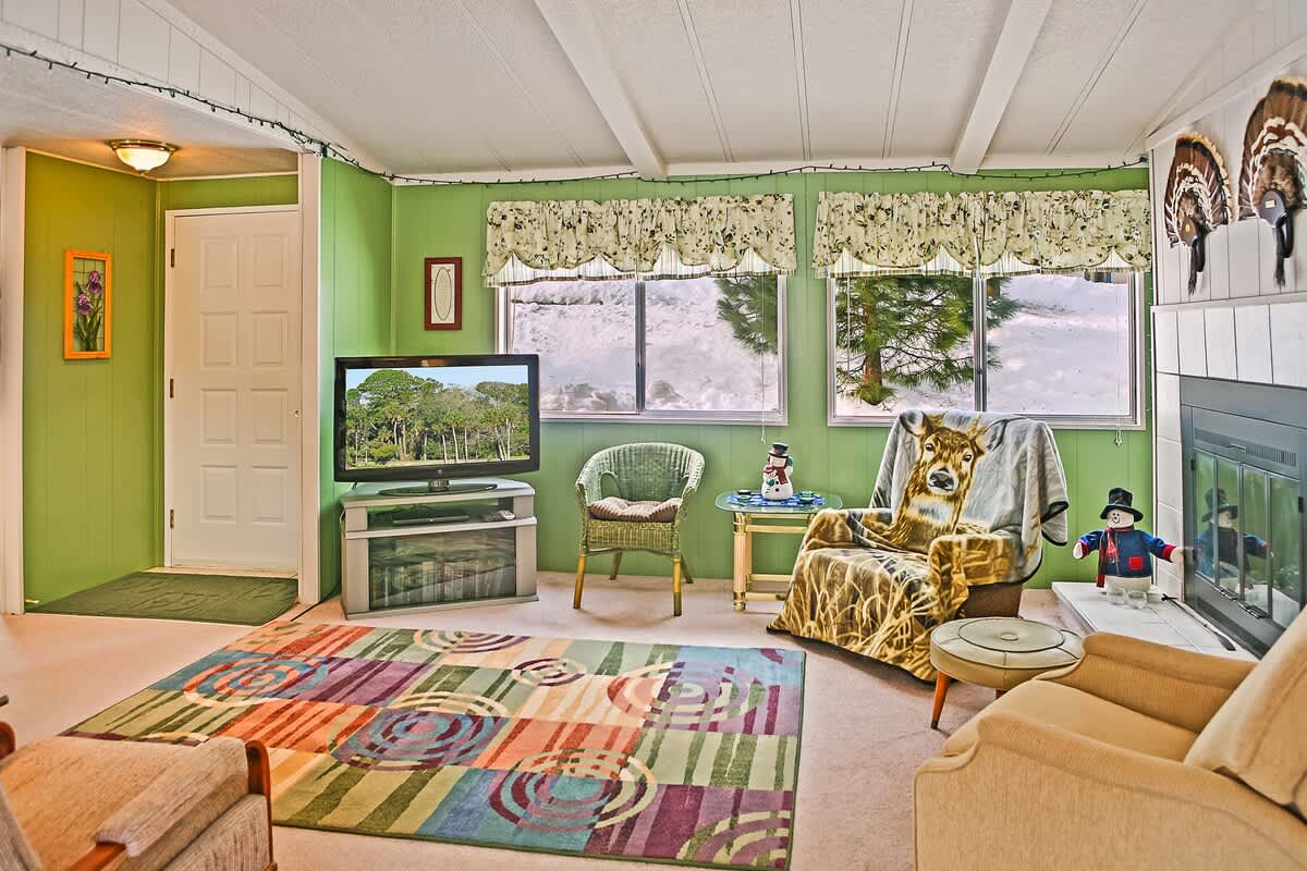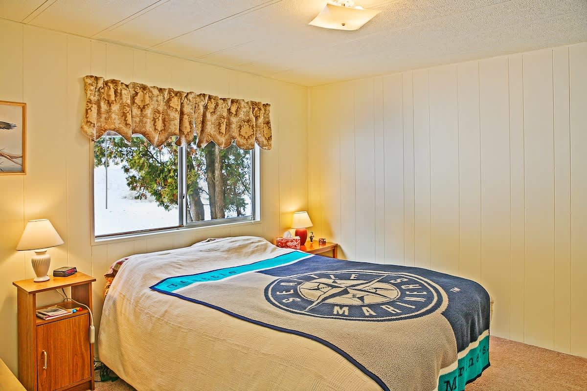 The inside of the cabin is complete with two baths and three bright, but cozy bedrooms that are sure to feel comfortable at anytime of the year.