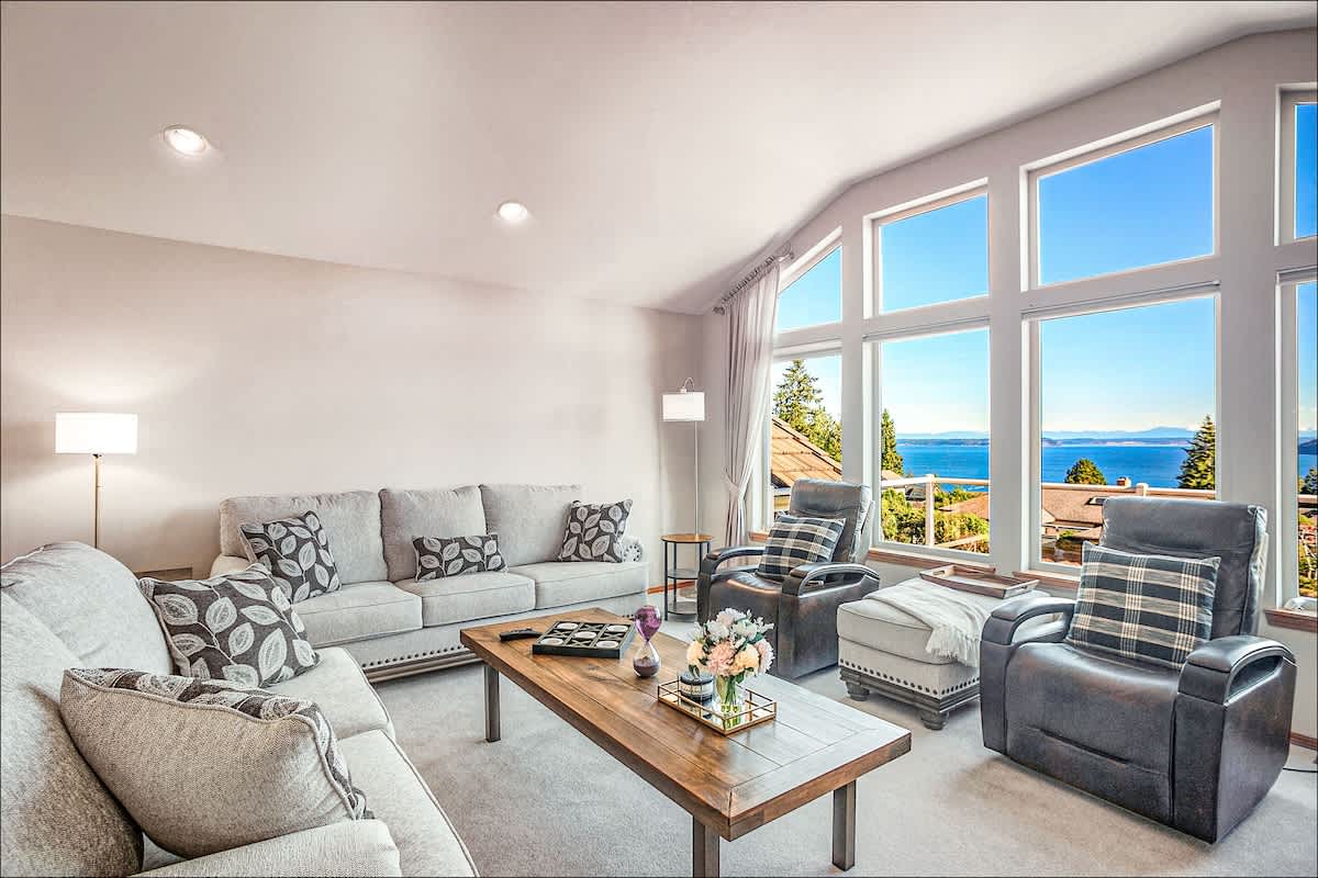 Near the shore of Puget Sound, with spell-binding water views from the expansive windows of the living room, family room, main bedroom and from the second story deck, you'll revel in the generous spaces and gracious amenities of this beautiful home.