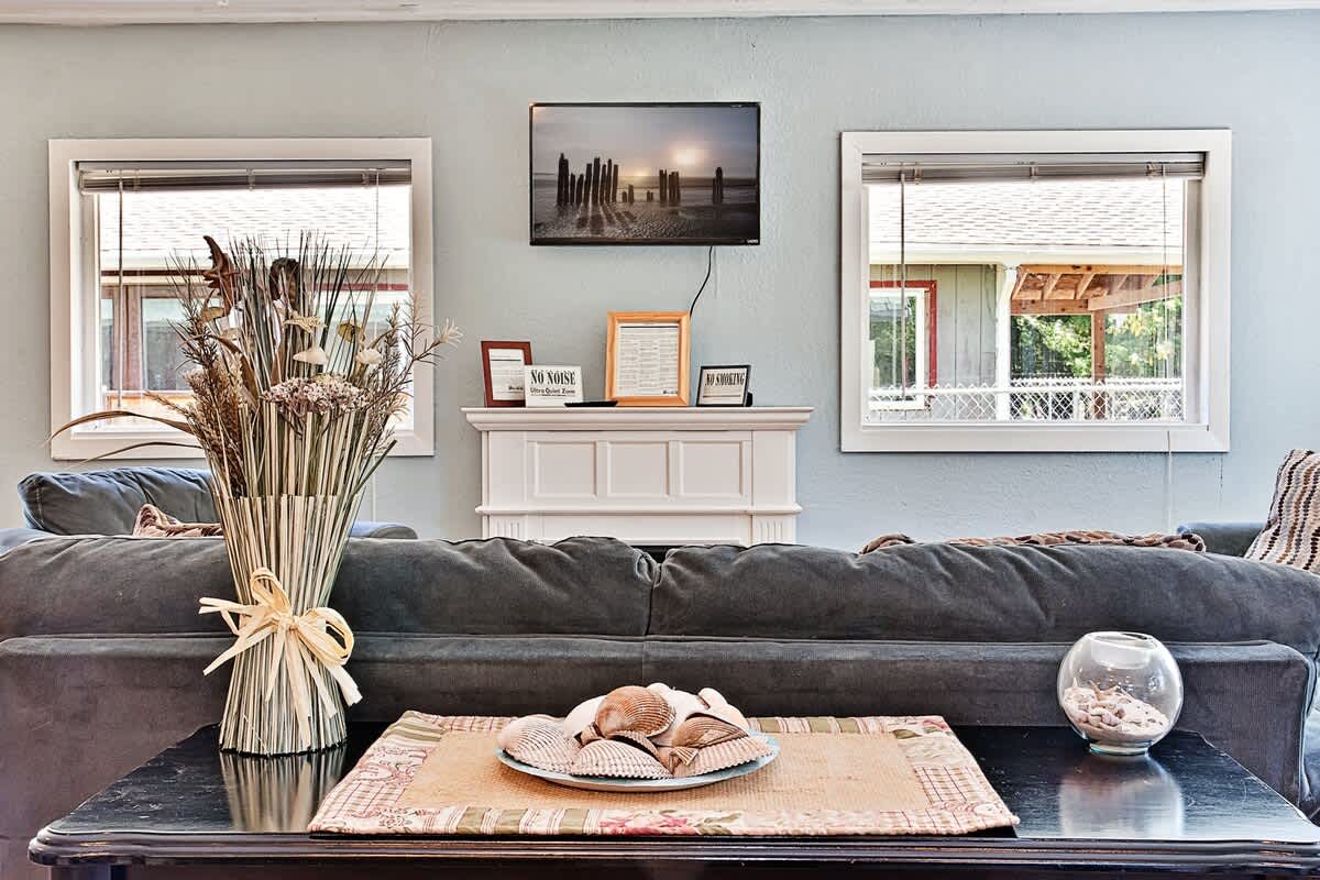 In the afternoon, you might just want to sit and read a book sitting on our comfy furniture. The entire cabin is colorful and bright with the kind of furnishings you would expect for beach décor.