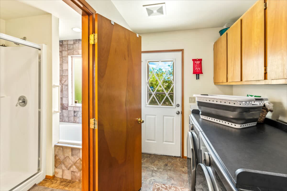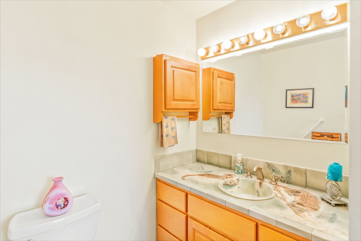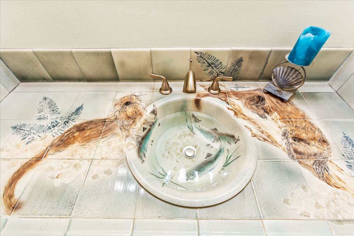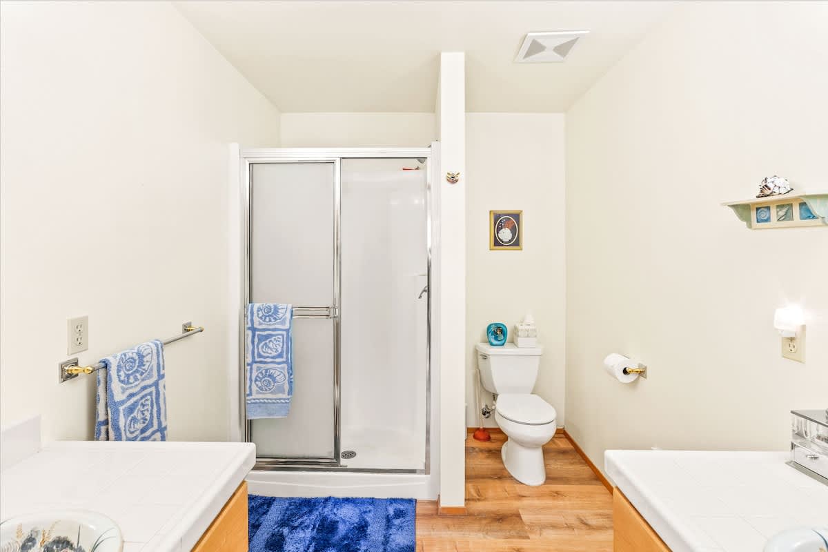 The fully-equipped kitchen boasts modern appliances and ample counter space, making meal preparation a breeze. Whether you're whipping up a hearty breakfast before a day of hiking or enjoying a leisurely dinner with fresh seafood caught nearby, you'll find everything you need to satisfy your culinary cravings. The kitchen includes a breakfast bar where guests can chat up the chef while meals are being prepared.